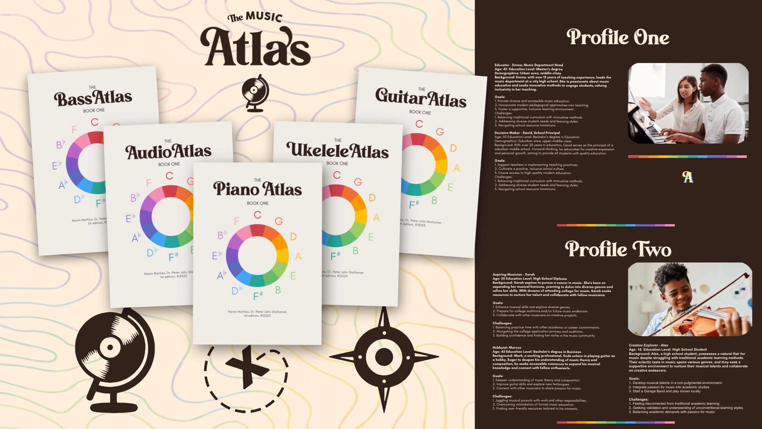 Music Atlas is a nonprofit organization focused on expanding access to modern music education. With a conceptual framework rooted in navigation metaphors — Atlases, Maps, and Compasses — the organization had strong thematic DNA but required strategic synthesis and structural clarity to translate its ideas into cohesive, user-centered tools.