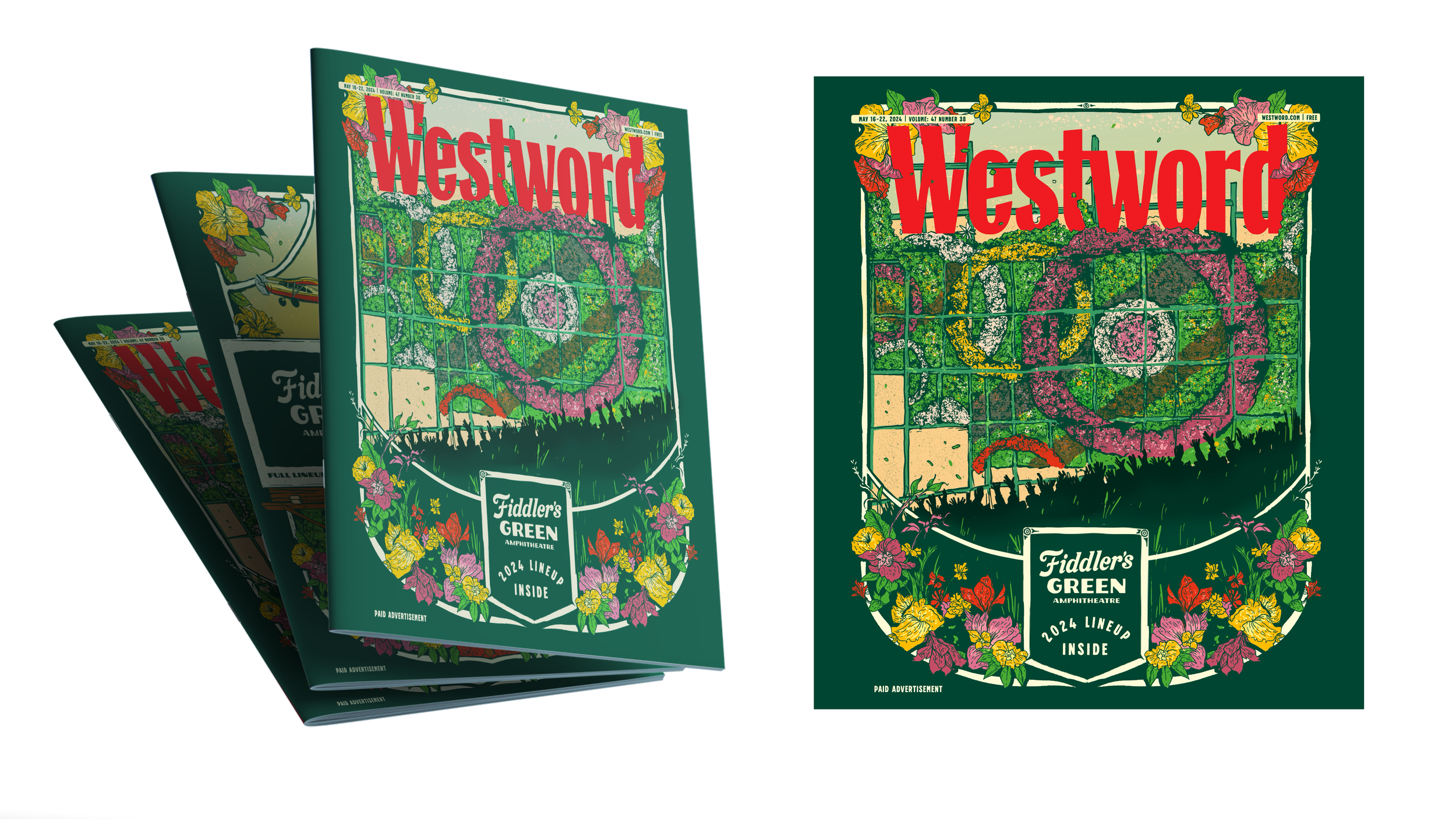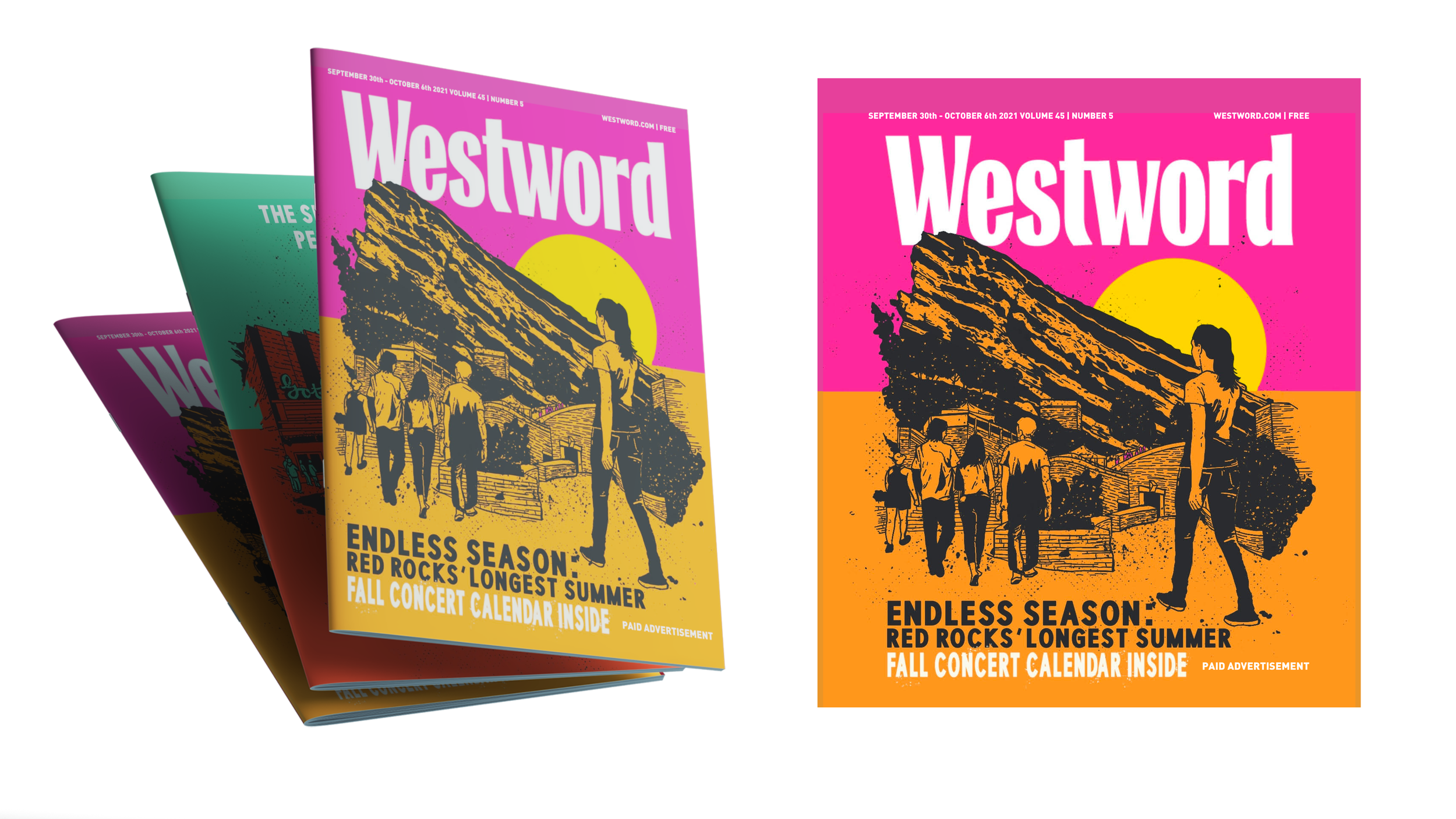 For the past five years, I have been commissioned to design the May cover of Westword Magazine, contributing to the publication’s seasonal music issue in alignment with AEG’s summer concert marketing initiatives.